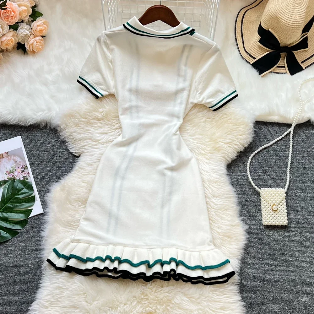 BWQ Fashion Women Knitted Mini Dress Ins Hot Sexy Package Hips Ruffled Party Dress Streetwear Lady Outfits Vestidos 2025