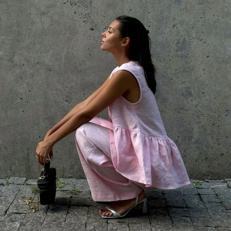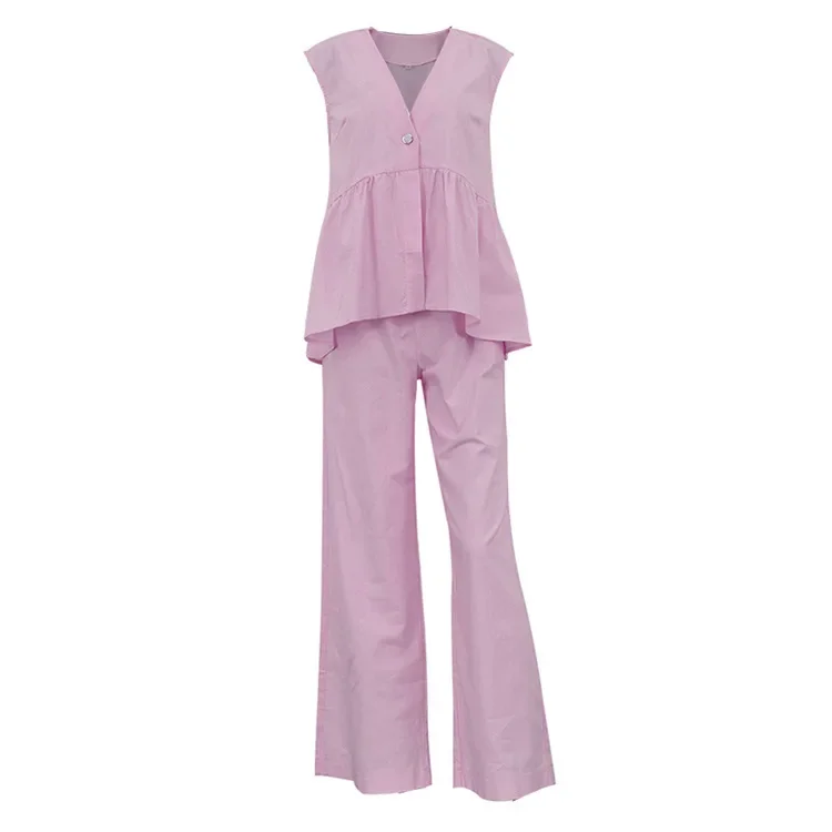 Cotton V-Neck Sleeveless Top And Pants Set Women's Commute Two-Piece Set Pure Color Elegant New 2025 Long Pants Suit