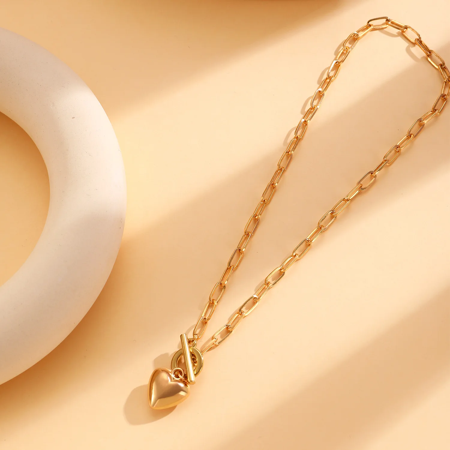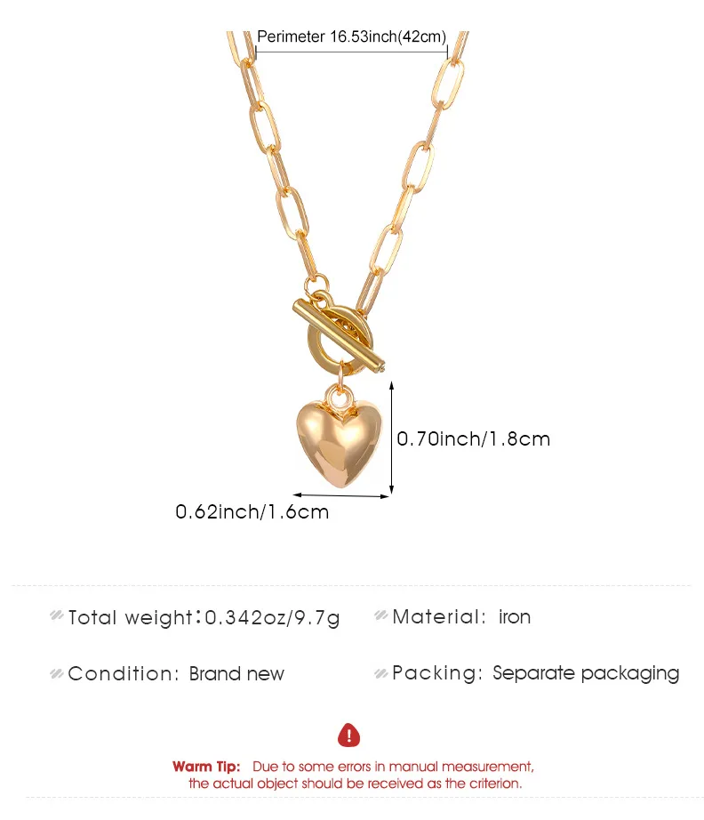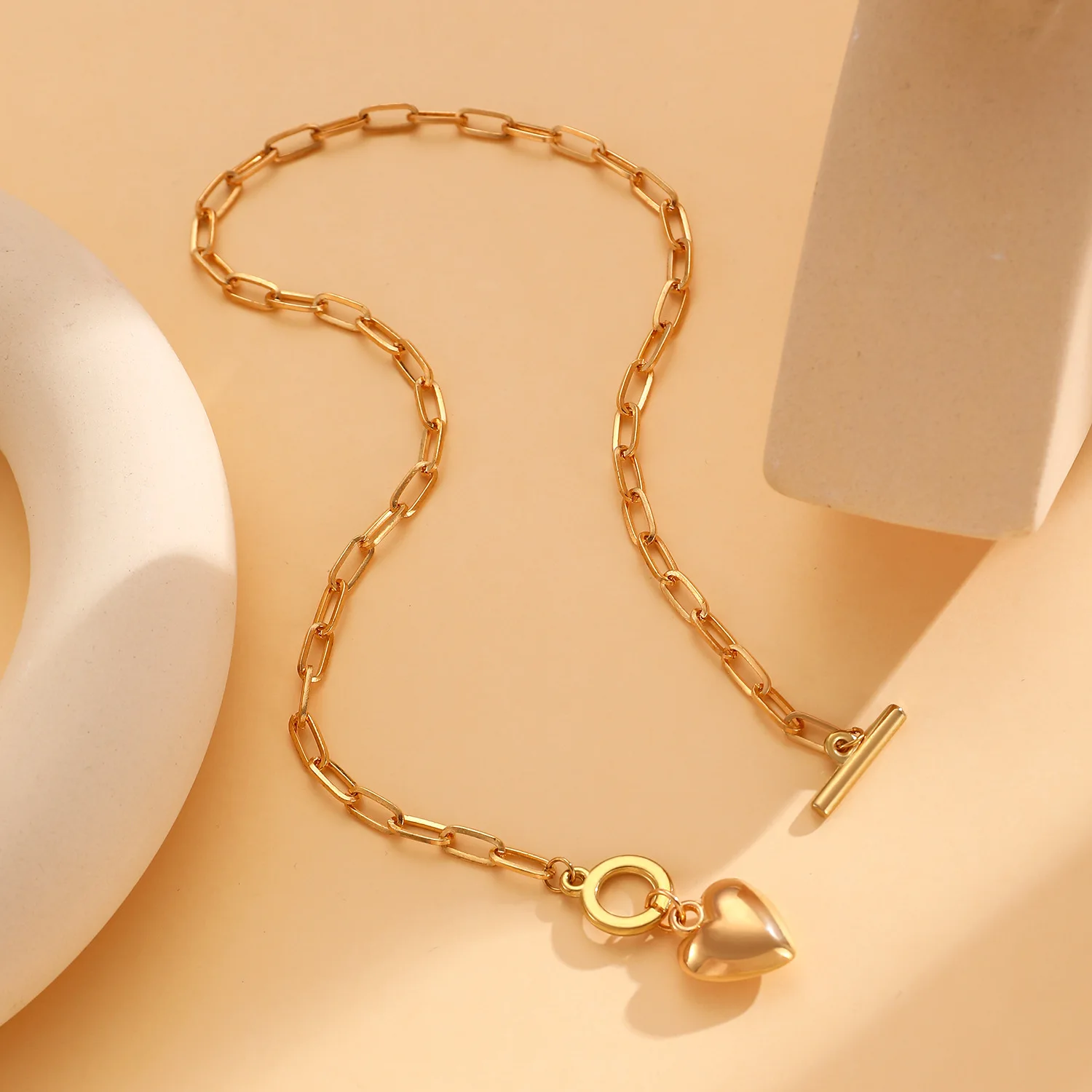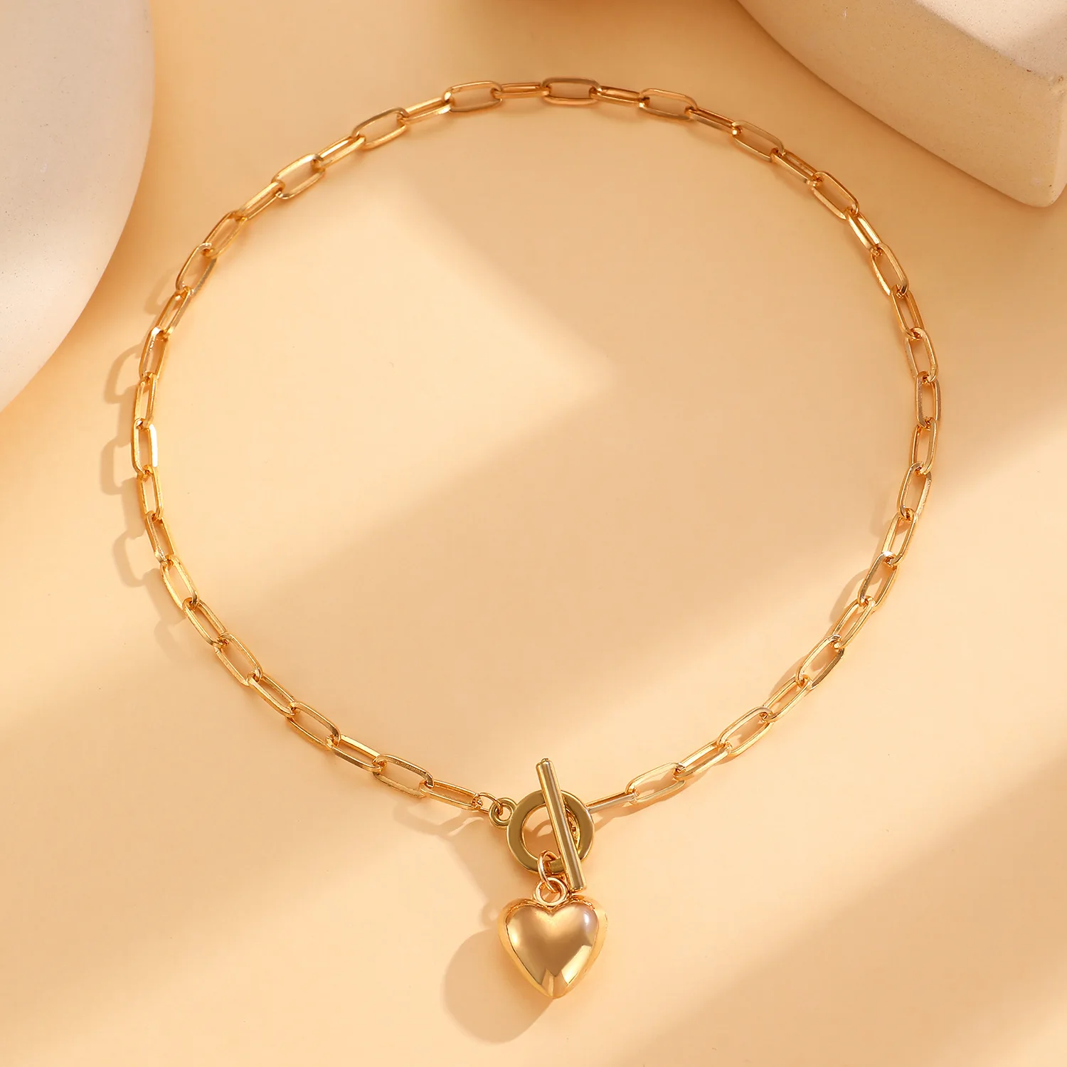 Fashion Gold Color Peach Heart Pendant Necklace For Women Jewelry 2025 Trending New Women's Sweet OT Buckle Heart Necklace GIFTS