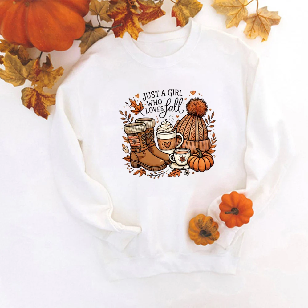 Just Girl Who Loves Fall Print Sweatshirt Thankful Grateful Fall Hoodie Women Fashion Autumn Holiday Pullover Top Famale Clothes