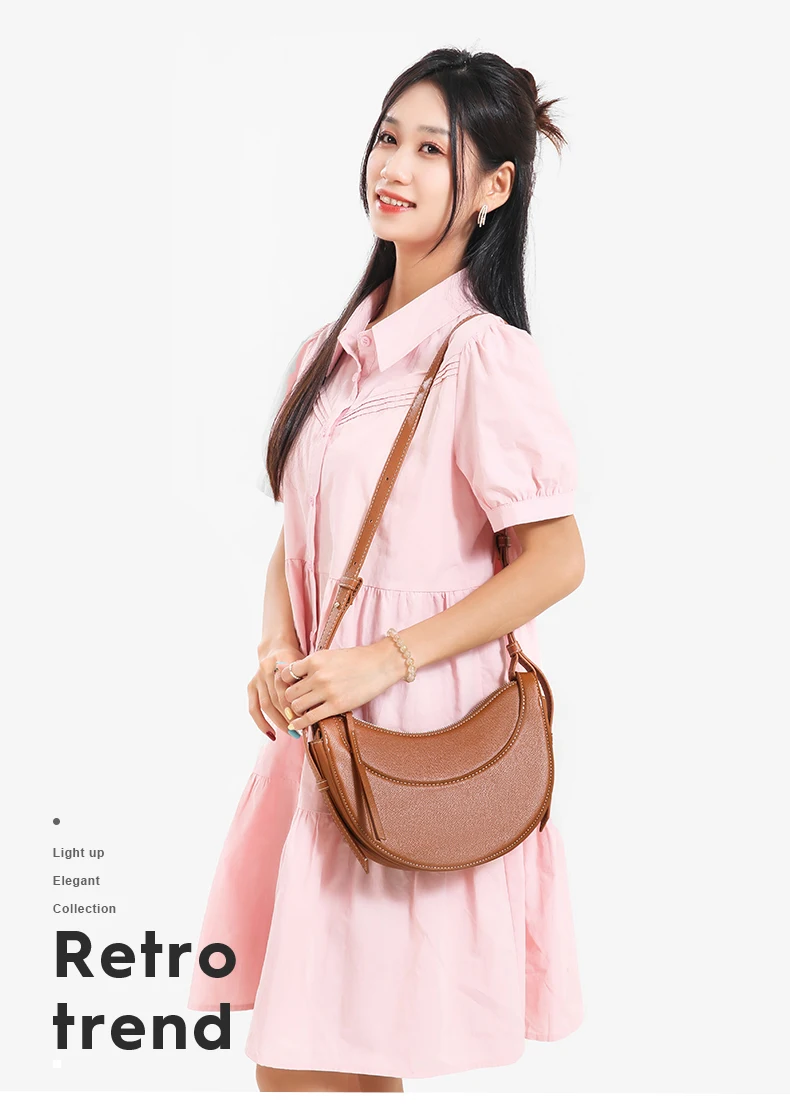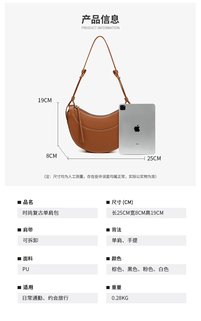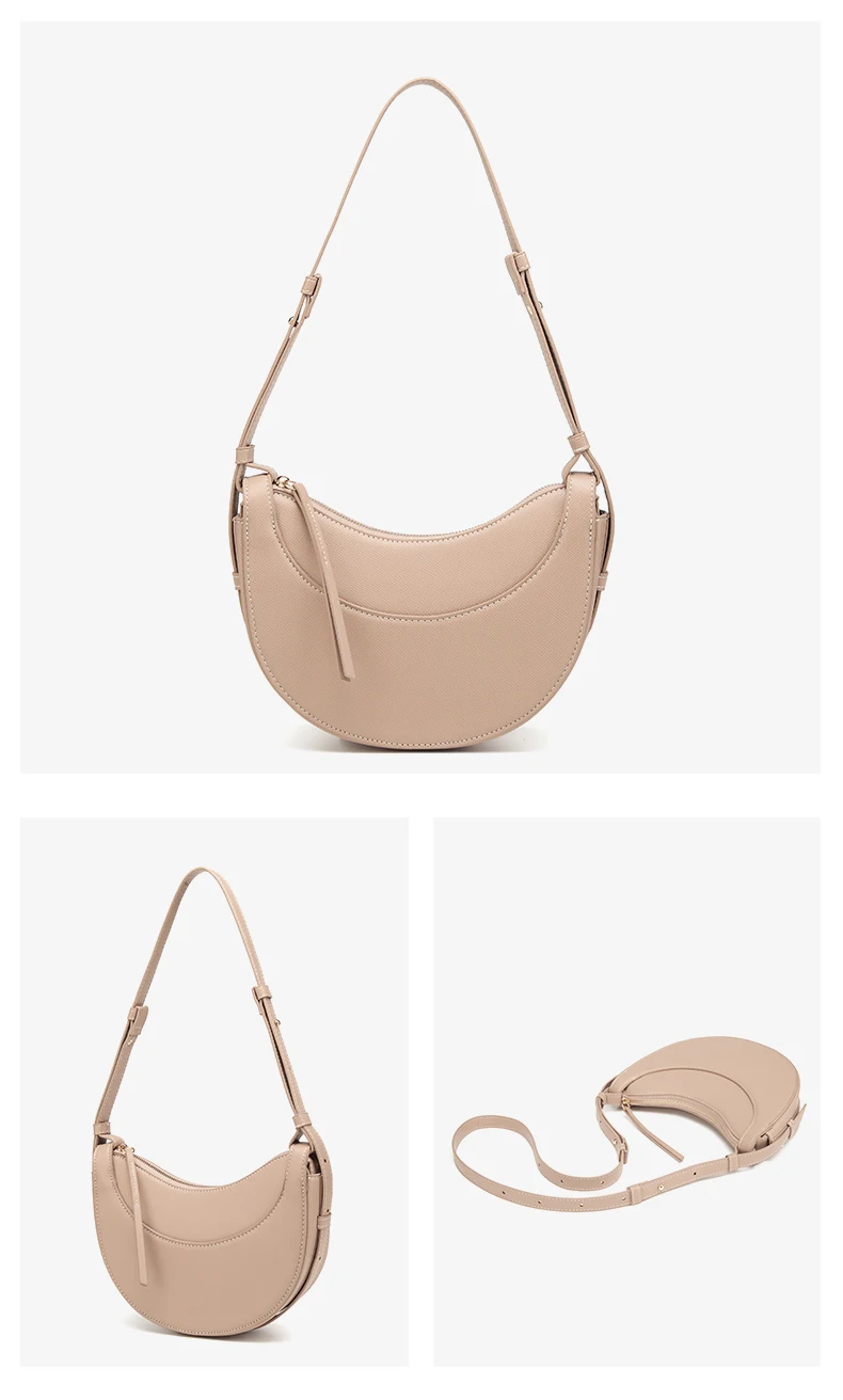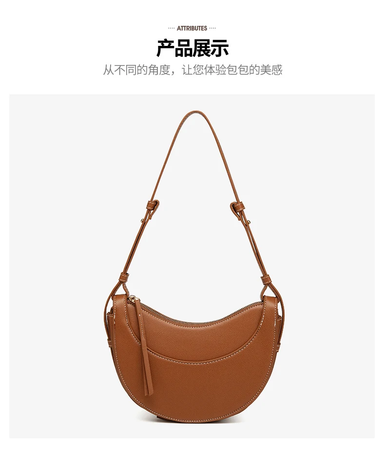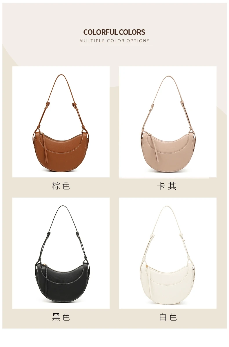 Sense of Luxury PU Half Moon Shoulder and Crossbody Bags Zipper Fashion Retro Hot Trendy Handbags for Women 2025 New Hot