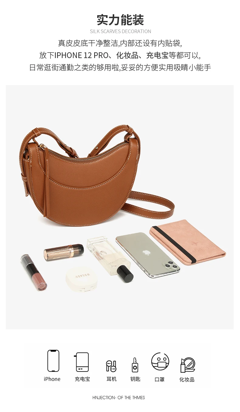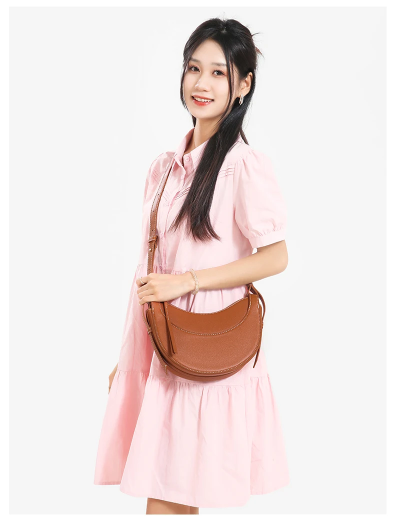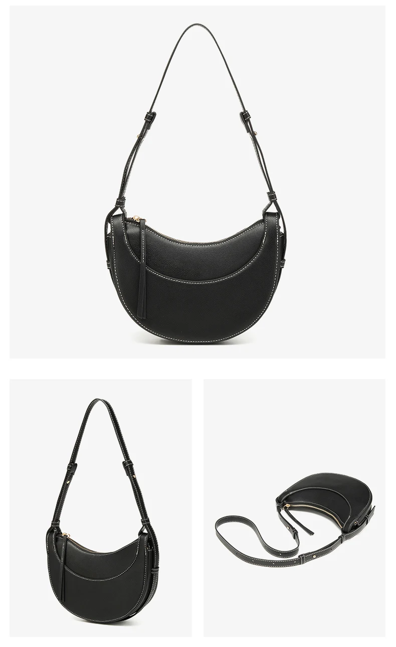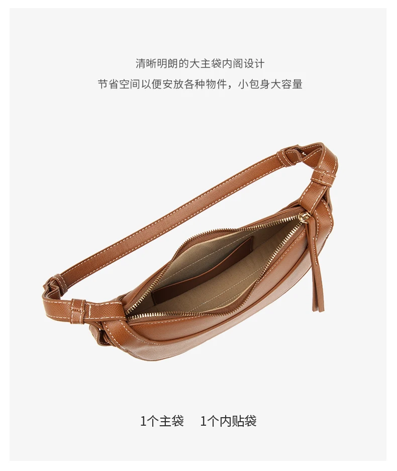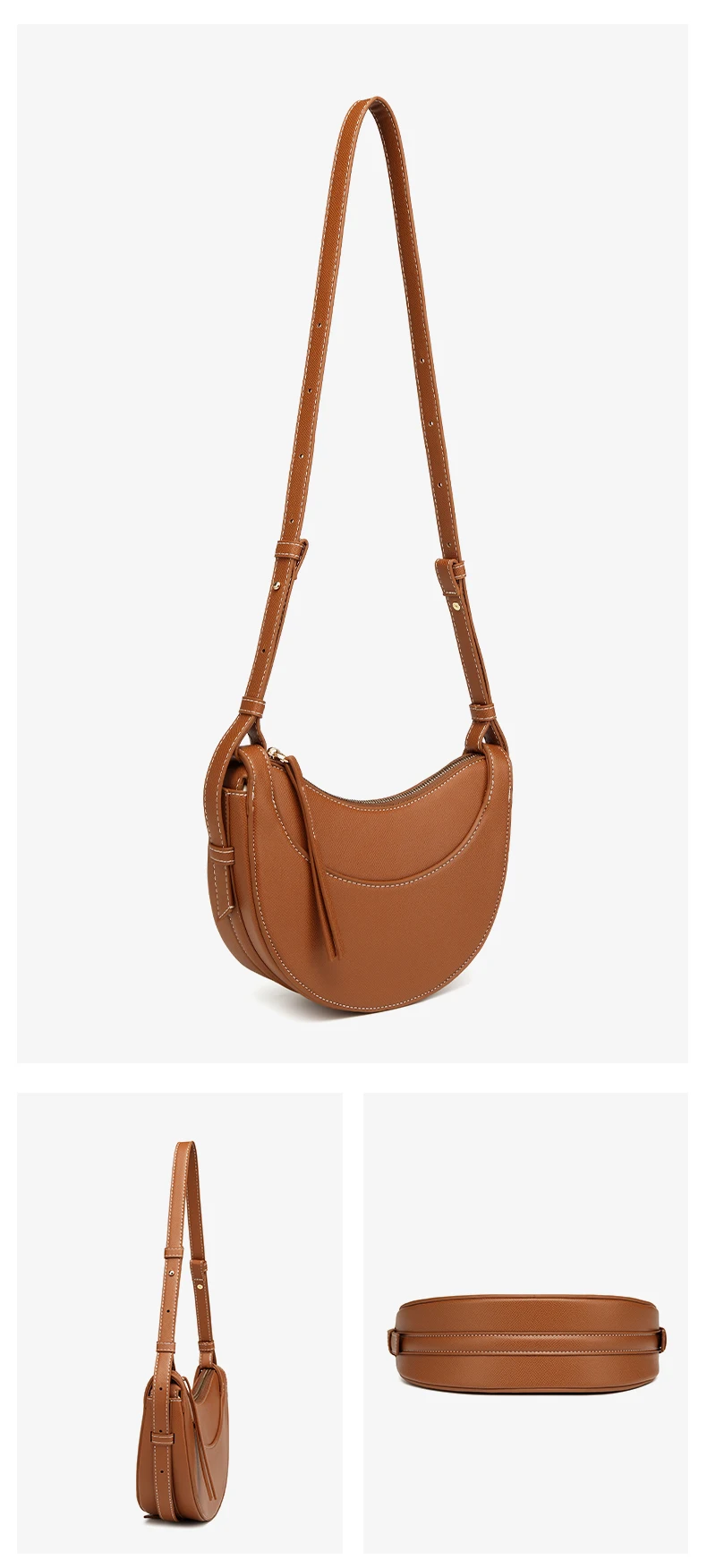 Sense of Luxury PU Half Moon Shoulder and Crossbody Bags Zipper Fashion Retro Hot Trendy Handbags for Women 2025 New Hot